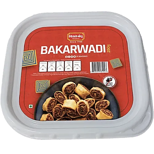 Chitale’s 200g Bakarwadi is a crispy, deep-fried Maharashtrian snack made from gram flour (besan) and wheat flour, filled with a deliciously spiced and slightly sweet stuffing. This spiral-shaped snack is rolled with a flavorful mix of coconut, sesame seeds, and aromatic spices, making it a perfect combination of crunch and taste.