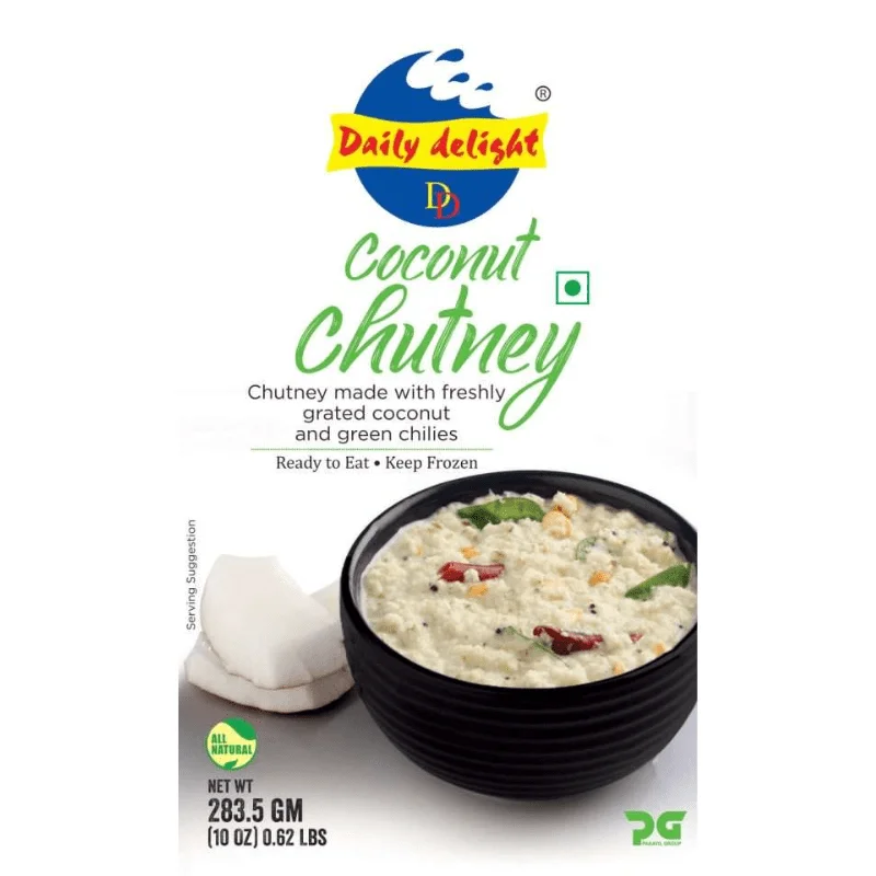 Daily Delight Coconut Chutney is a traditional South Indian-style chutney made from fresh coconut, green chilies, and aromatic spices. This frozen chutney offers a convenient and authentic way to enjoy the classic flavors of coconut chutney without the hassle of grinding and preparing it from scratch.