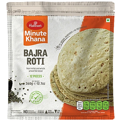 Haldiram’s Bajra Roti is a nutritious and wholesome flatbread made from bajra (pearl millet) flour. Known for its rich fiber and essential nutrients, this frozen bajra roti is a healthy and convenient choice for those who enjoy traditional Indian millet-based breads.