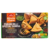 Haldiram’s Punjabi Samosa is a classic North Indian snack, featuring a crispy, golden pastry stuffed with a flavorful, spiced potato and green pea filling. These large, traditional samosas are perfect as an appetizer, tea-time snack, or party favorite. Enjoy them with chutney, ketchup, or even as a chaat-style dish with yogurt and spices.